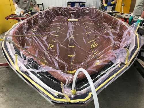 The key feature in closed molding vs. open molding, is resin to glass ratios. Compared to open molding, where glass content hovers around 30%, closed molding can yield as high as 70% glass content and produce a very lightweight, high-strength composite that is unachievable in open molding. This important feature allows us to tailor any composite to a polyester, vinyl ester, or epoxy resin system matched with any reinforcement type you choose. Eglass, Carbon, Aramid, Basalt, and Inegra are some examples of reinforcements we use here daily.