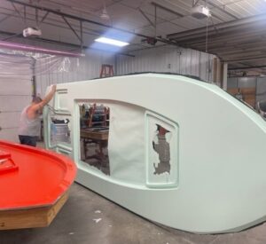 Master Composites worked with a team of design artists, welders, and engineers from a start-up company called Change Lane out of Minnetonka, MN. The concept was to produce a lightweight trailer as a mobile oil change station. With an aluminum frame and a completely lightweight composite exterior, the concept was no different than the average motor home or camper trailer, only that we had to utilize closed molding technologies to form the panels with the exterior skin of over 10,000 hemispheric bubbles! It is safe to say no details were left out on this project.