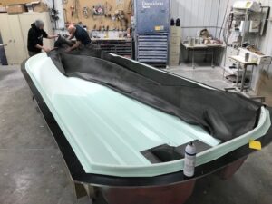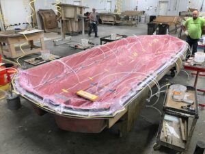 Mark and his team – Sam Gilk & Dan Gilk, partnered with us to help infuse the hull, cap, liner, and all other components. This boat was made with a combination of today’s advanced materials, including Carbon, Basalt, and Inegra, resulting in one of the market’s highest-performing, lightest, and strongest skiffs.