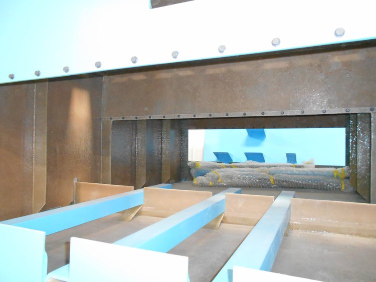 The conveyor was unique because it required 100% chemical-resistant materials such as a chemical-rated surface veil, C glass, Isophthalic resin, and chemical-rated core materials. Even the hardware, bolts, and nuts were chemical-resistant FRP!