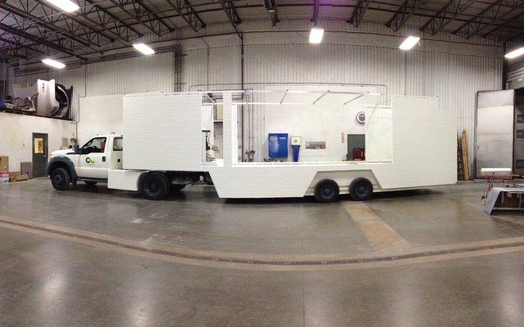 Master Composites worked with a team of design artists, welders, and engineers from a start-up company called Change Lane out of Minnetonka, MN. The concept was to produce a lightweight trailer as a mobile oil change station. With an aluminum frame and a completely lightweight composite exterior, the concept was no different than the average motor home or camper trailer, only that we had to utilize closed molding technologies to form the panels with the exterior skin of over 10,000 hemispheric bubbles! It is safe to say no details were left out on this project.